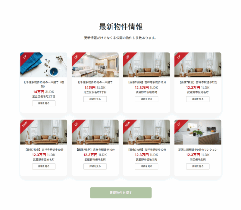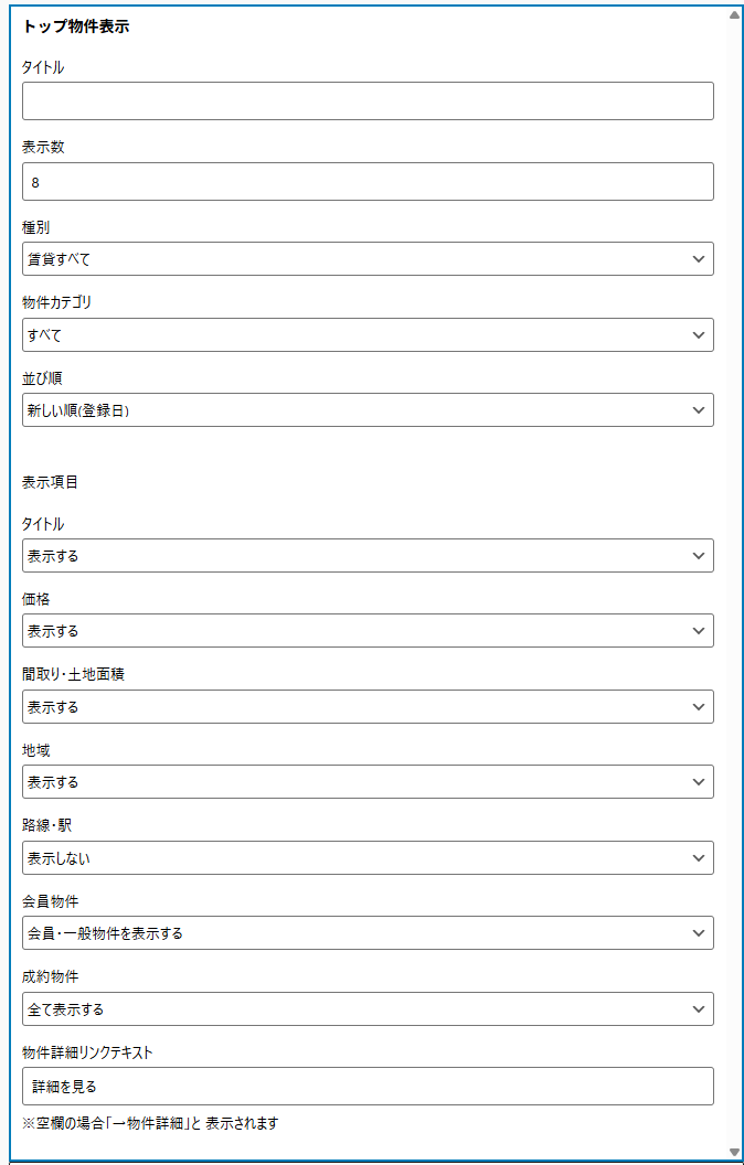 トップへの物件表示やテキストなど自由に表示することが出来ます。